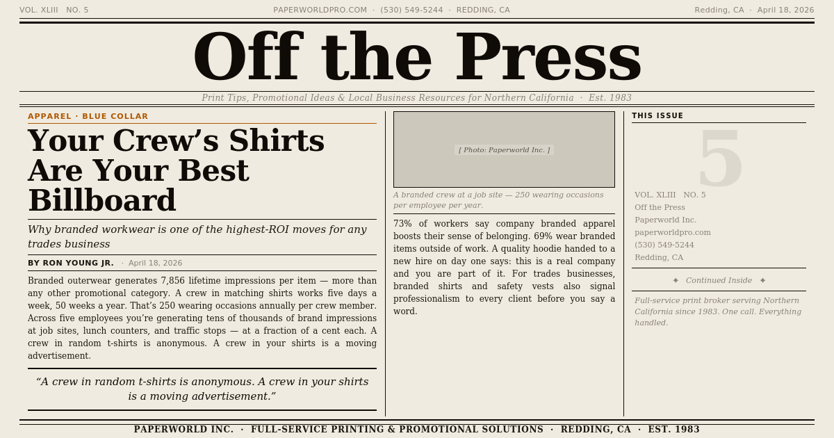 A high-quality shirt, hoodie, or hat with tasteful branding gets worn voluntarily. That’s the test. Would someone wear this even if it wasn’t free? If yes, it’s a walking billboard. If no, it goes in the donation pile. Fit and fabric matter more than most companies realize.